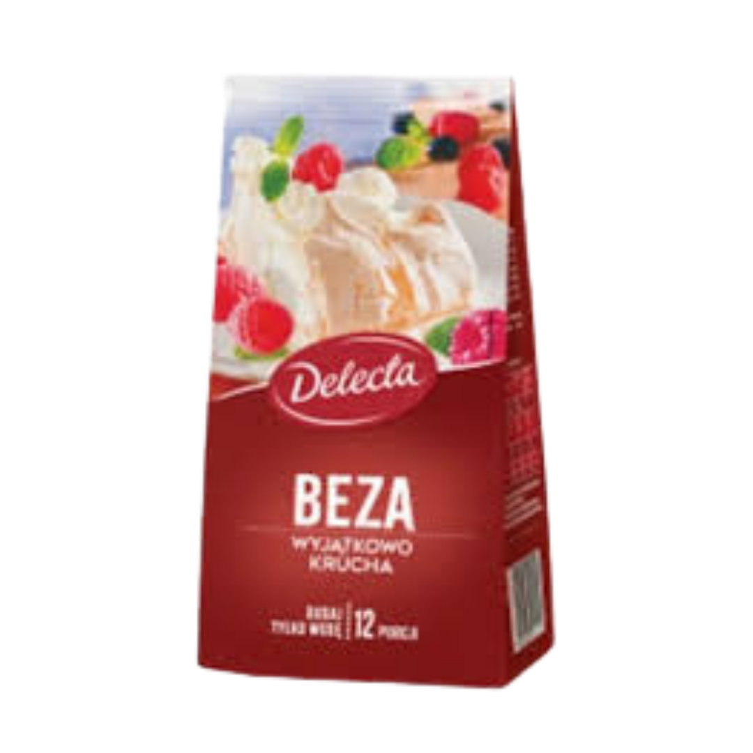 Delecta Meringue Beza is a premium Polish confection crafted from whipped egg whites and sugar, delivering an airy, delicate texture that dissolves on the palate. This 260g package features the authentic recipe that has made Delecta a trusted name in European bakeries for generations. Perfect for dessert enthusiasts seeking genuine meringue cookies with a light, crispy exterior and marshmallow-like interior. Ideal for pairing with coffee, incorporating into dessert compositions, or enjoying as an elegant standalone treat. A sophisticated choice for those who appreciate traditional confectionery craftsmanship.